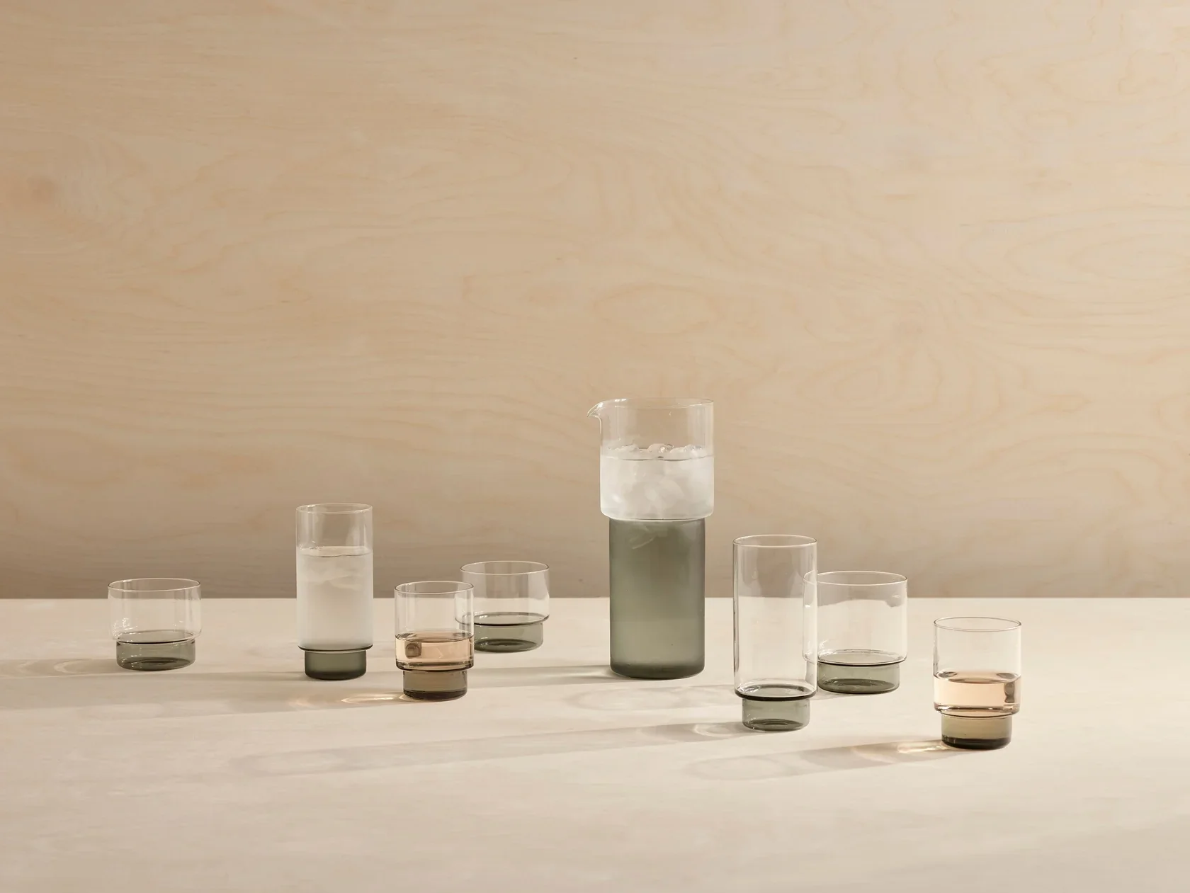 The range is well-proportioned and graphic in form, and the subtle accent of coloured glass elevates the drink whilst still allowing you to appreciate the shade of the drink.